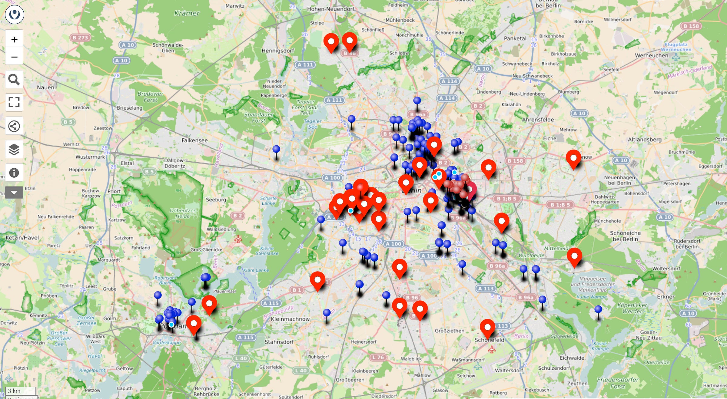 To get an idea of how much of an influence this man’s investments have had on Friedrichshain, one of the areas at the forefront of the city’s gentrification conversation, the WatchBlog displays a handy map of the city with properties marked as owned by his companies. His collection is vast.